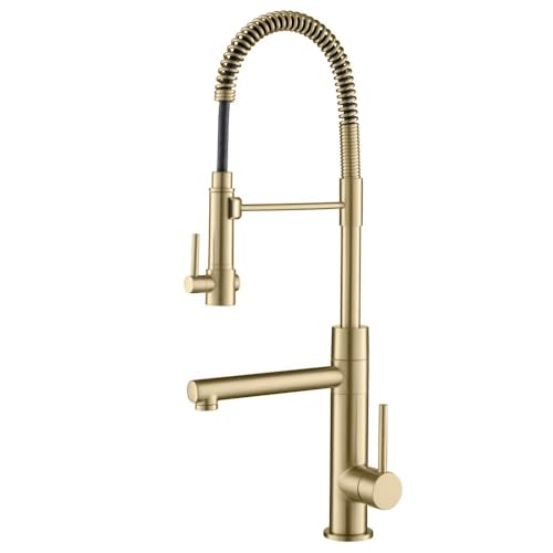 Kraus KPF-1603BG Artec Pro 2-Function Commercial Style Pre-Rinse Kitchen Faucet with Pull-Down Spring Spout and Pot Filler, 24.75 Inch, Brushed GoldKraus KPF-1603BG Artec Pro 2-Function Commercial Style Pre-Rinse Kitchen Faucet with Pull-Down Spring Spout and Pot Filler, 24.75 Inch, Brushed Gold
